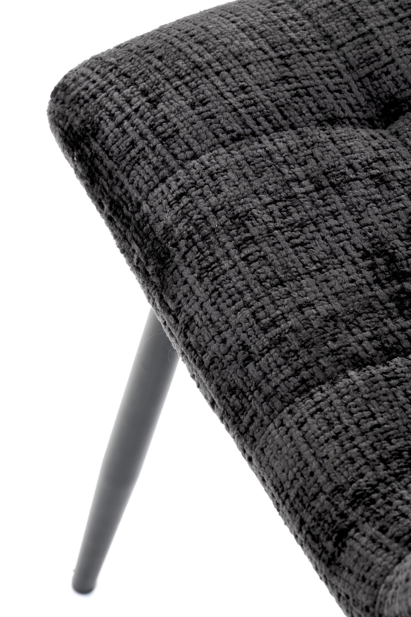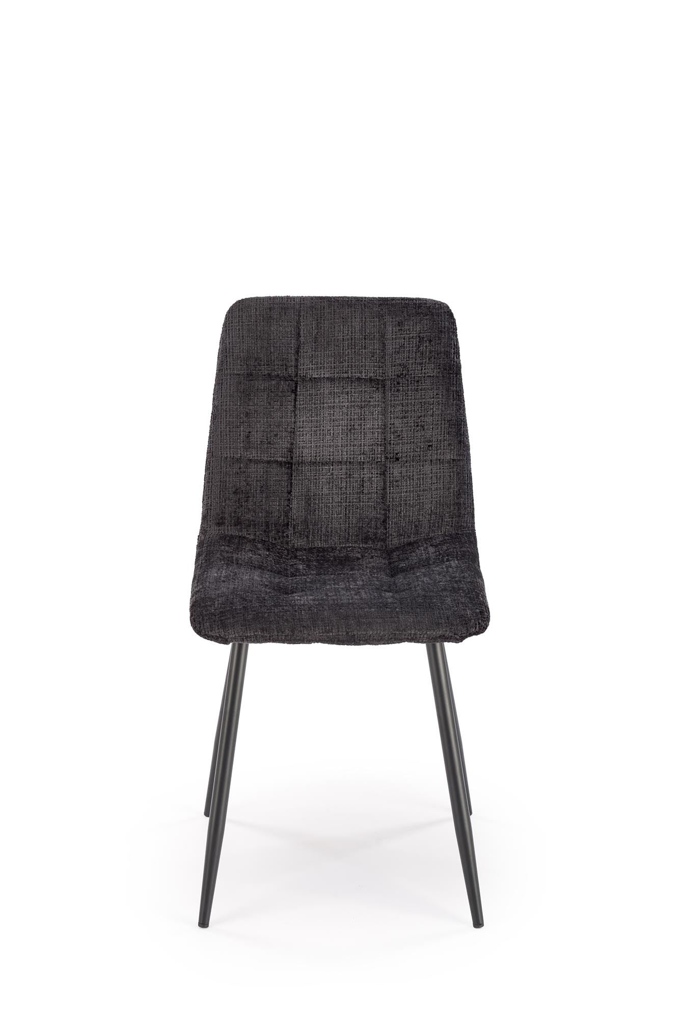Jídelní židle K547 - je pohodlná a elegantní židle vyrobena v kombinaci lakované oceli a pohodlného sedáku a opěráku čalouněným silnou látkou v černé barvě.