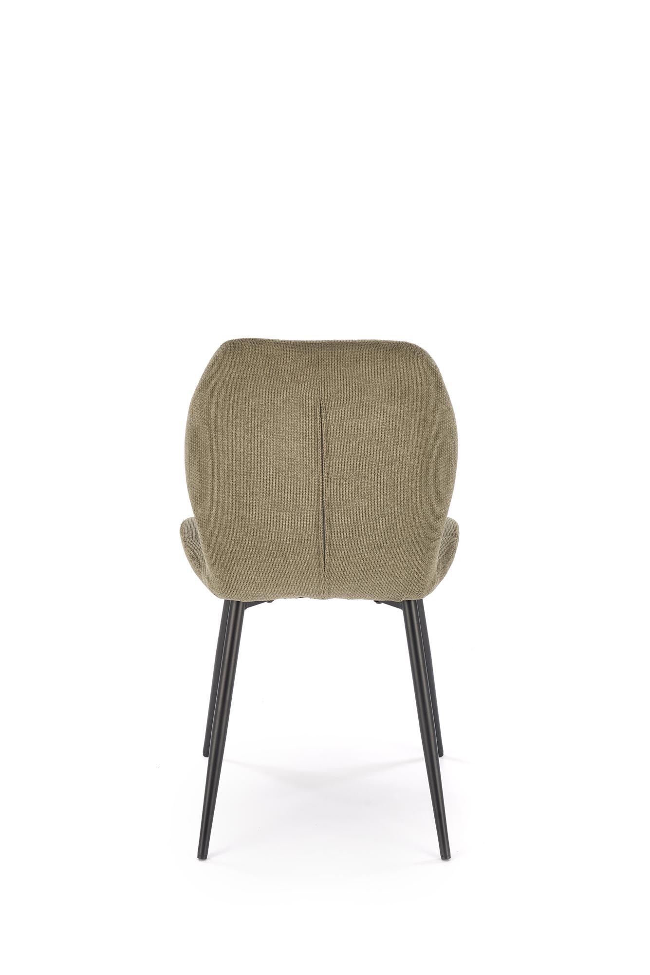 Jídelní židle K548 - je elegantní židle vyrobena v kombinaci lakované oceli a pohodlného sedáku a opěráku čalouněným látkou VERDO 74 v olivové barvě.