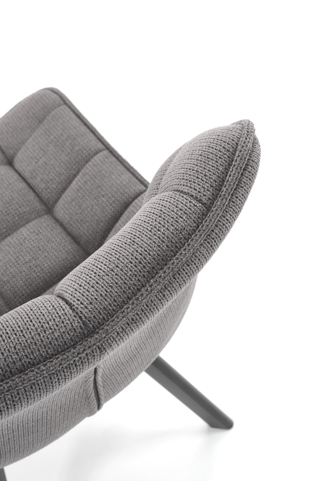 Jídelní židle K549 - je pohodlná jídelní židle vyrobena z lakované oceli v černé barvě, potažena tkaninou VARDO 11 v šedém provedení.
