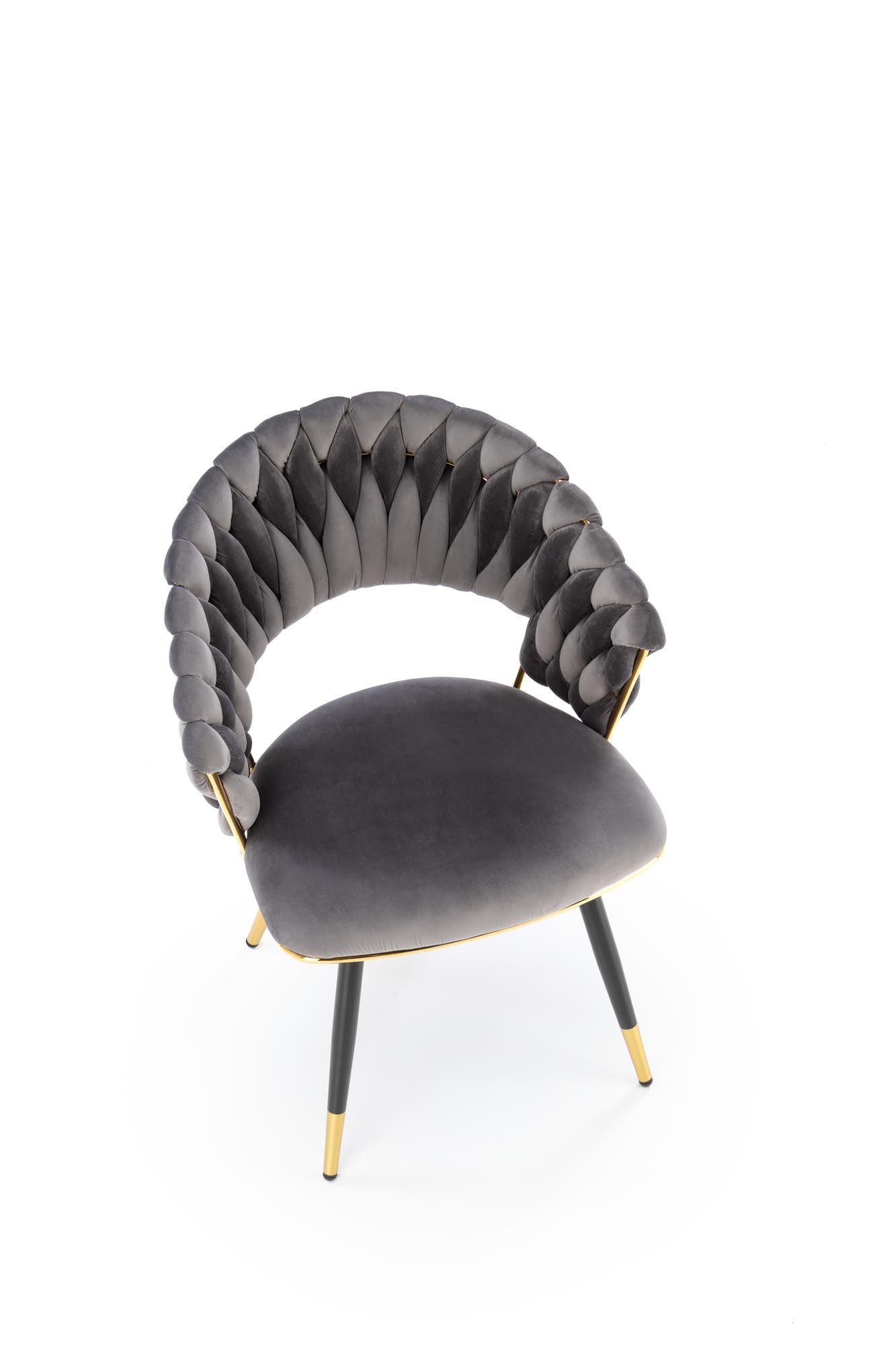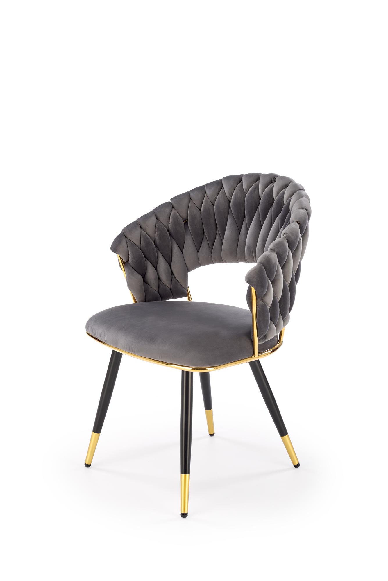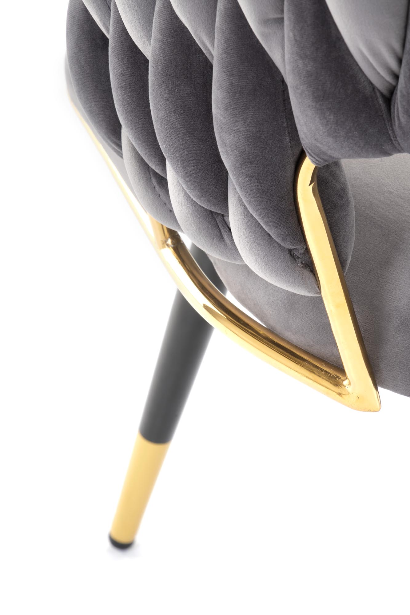 Jídelní židle K551 - je elegantní židle vyrobena v kombinaci černozlaté lakované oceli a pohodlného čalouněného sedáku a opěráku v šedé sametové potahové látce BLUVEL 14.