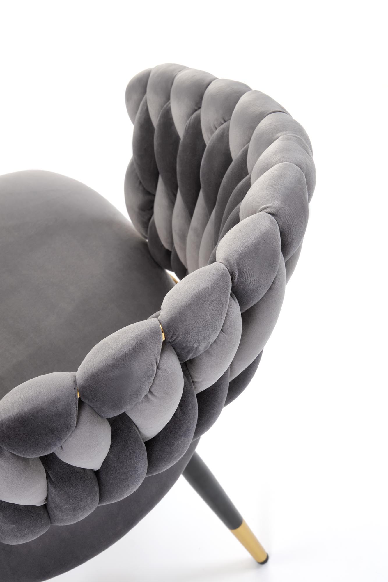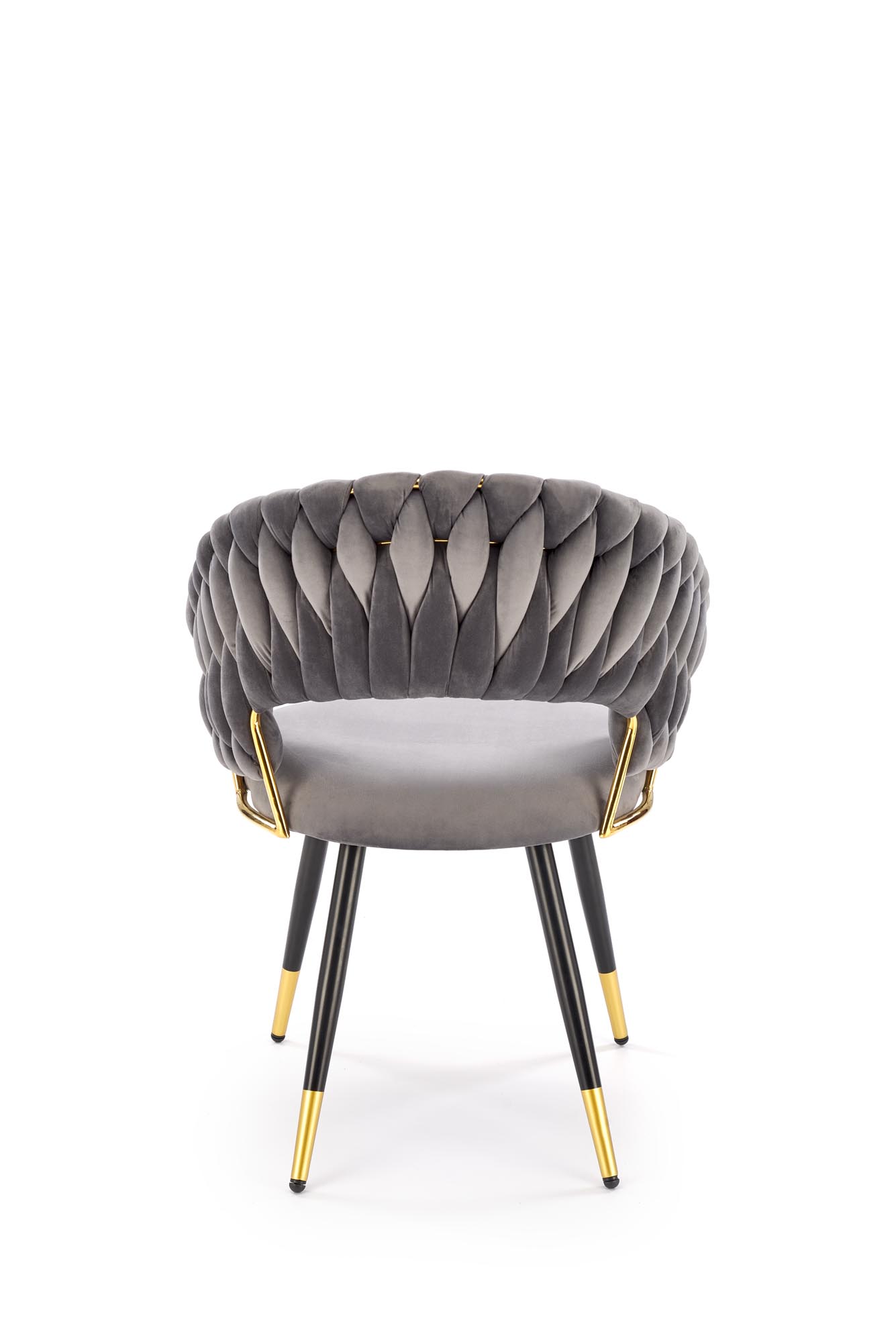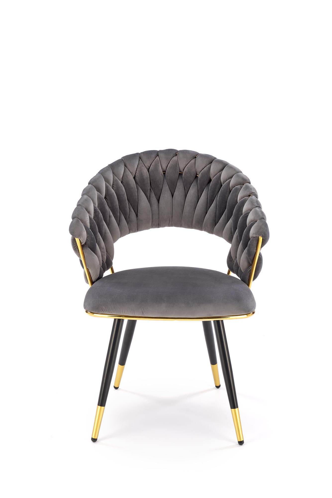 Jídelní židle K551 - je elegantní židle vyrobena v kombinaci černozlaté lakované oceli a pohodlného čalouněného sedáku a opěráku v šedé sametové potahové látce BLUVEL 14.