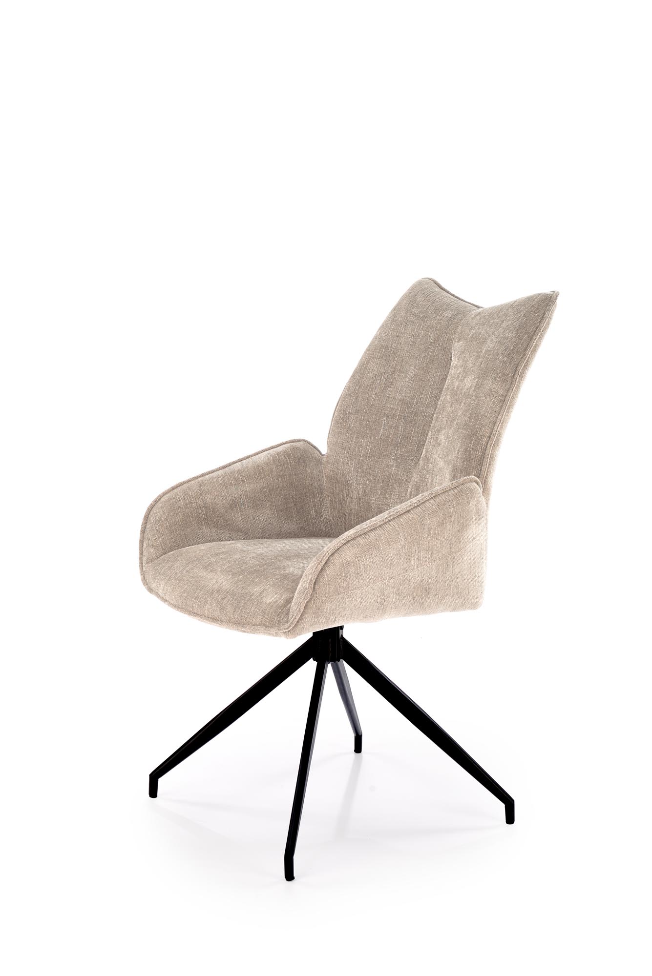 Jídelní židle K553 - je elegantní otočná židle vyrobena v kombinaci lakované oceli v černé barvě a pohodlného čalouněného sedáku potaženým kvalitní látkou ODIN 28 v béžové barvě. Snadný pohyb zajišťuje otočný mechanismus 360 stupňů.