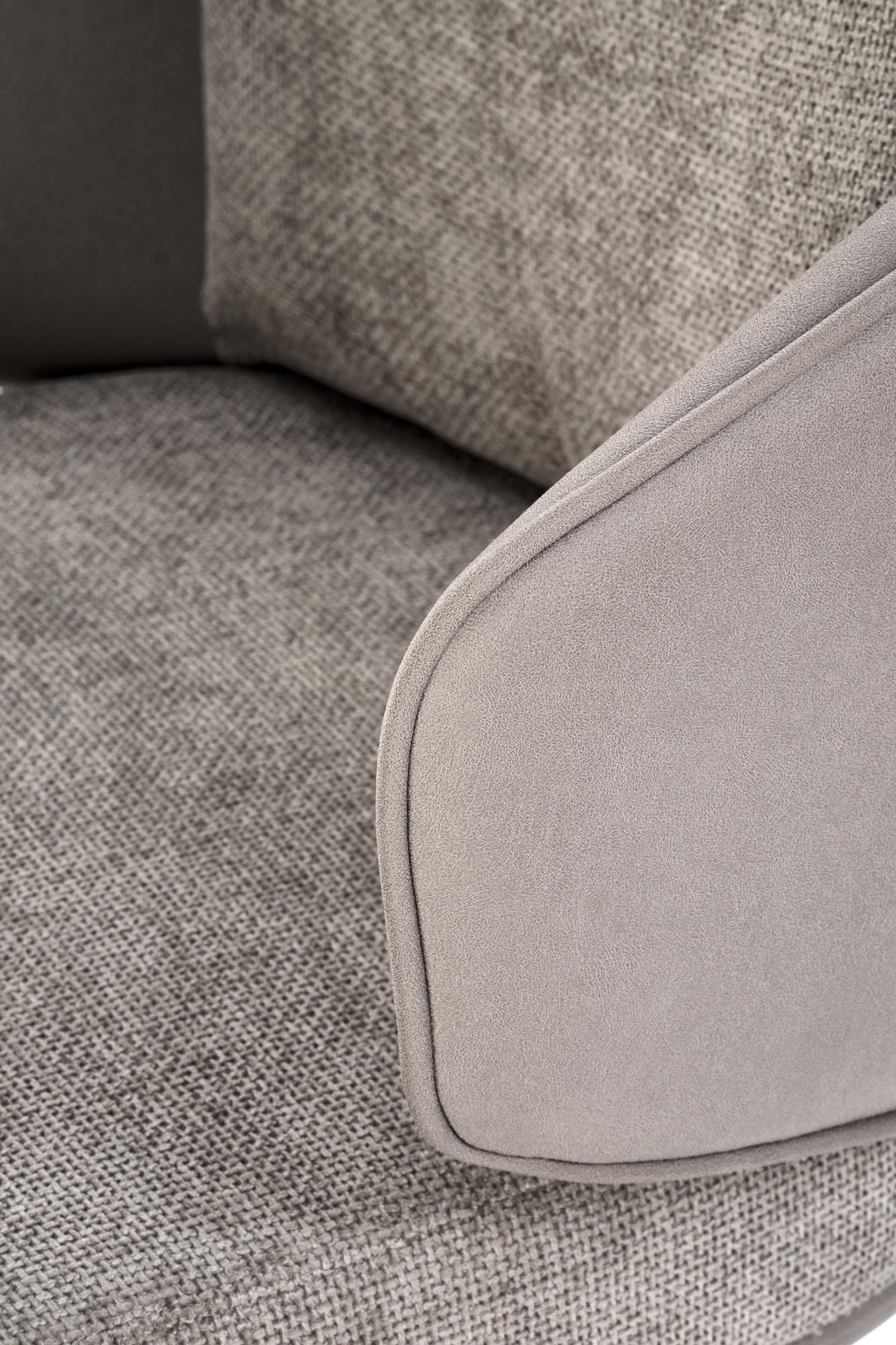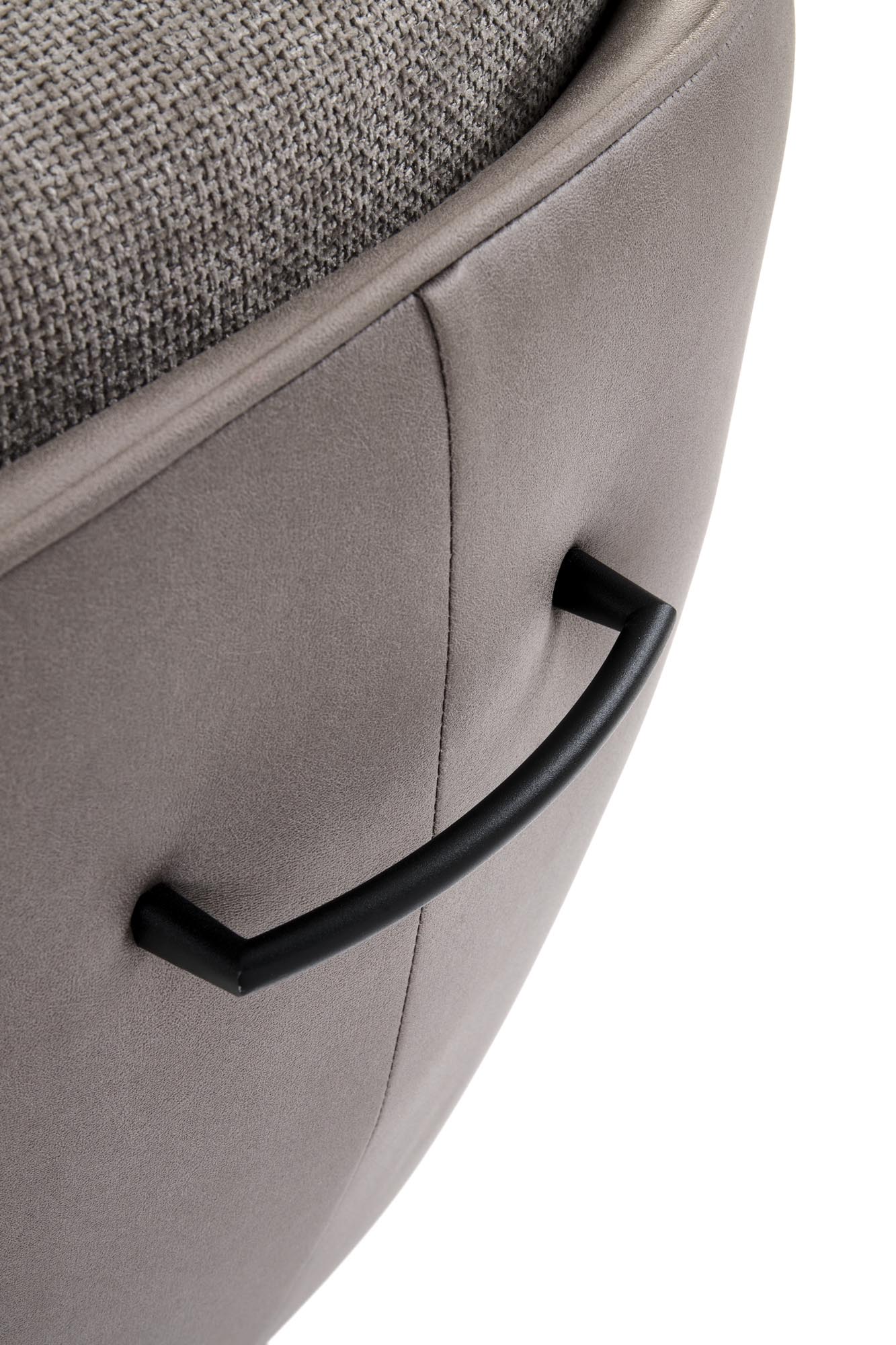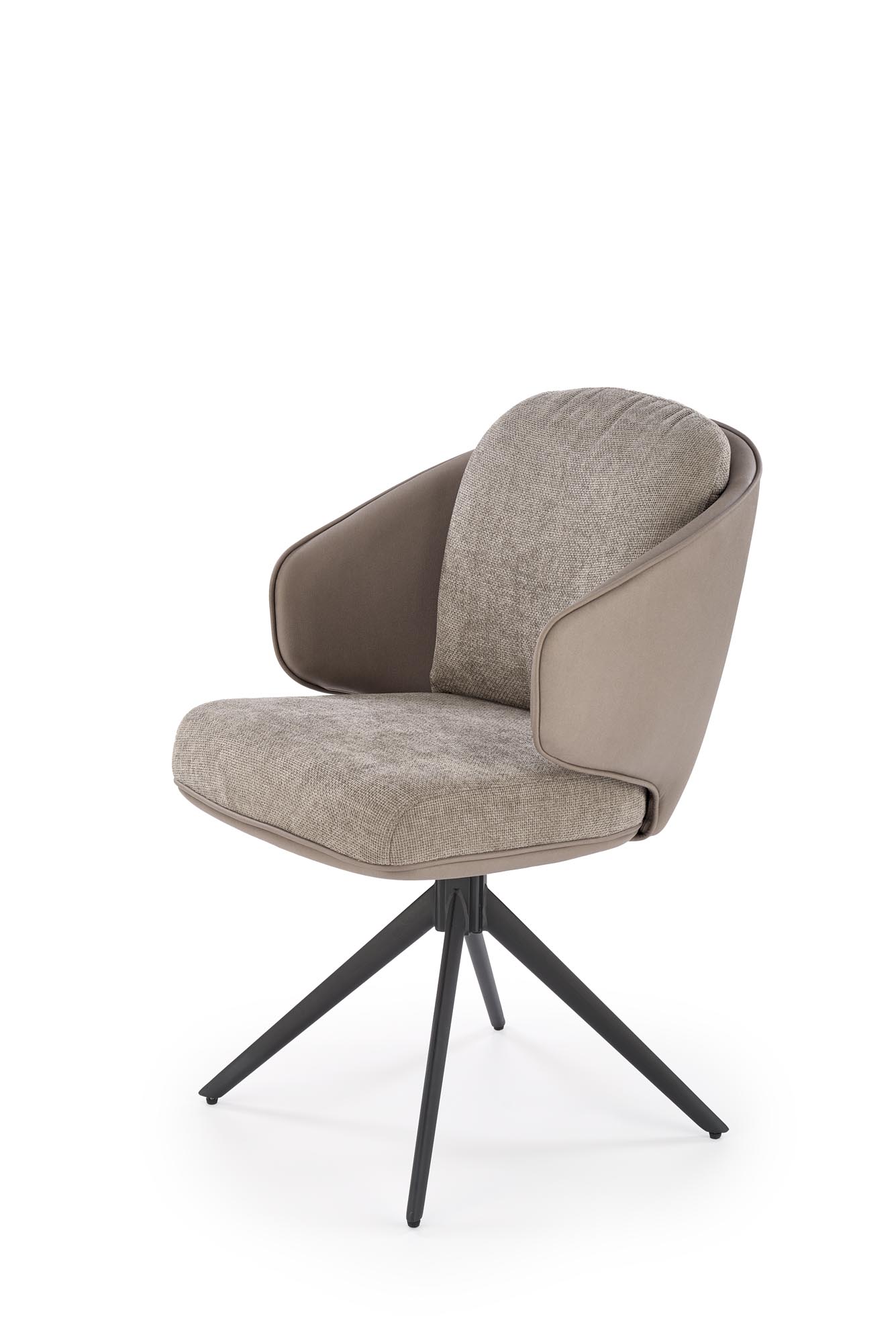 Jídelní židle K554 - je elegantní otočná židle vyrobena v kombinaci lakované oceli v černé barvě a pohodlného čalouněného sedáku v kombinaci barev světle šedé a šedé. Opěradlo a sedadlo je potaženo látkou, vnější strana odolnou eko kůží. Otočný mechanismus nabízí funkci 180 stupňů.