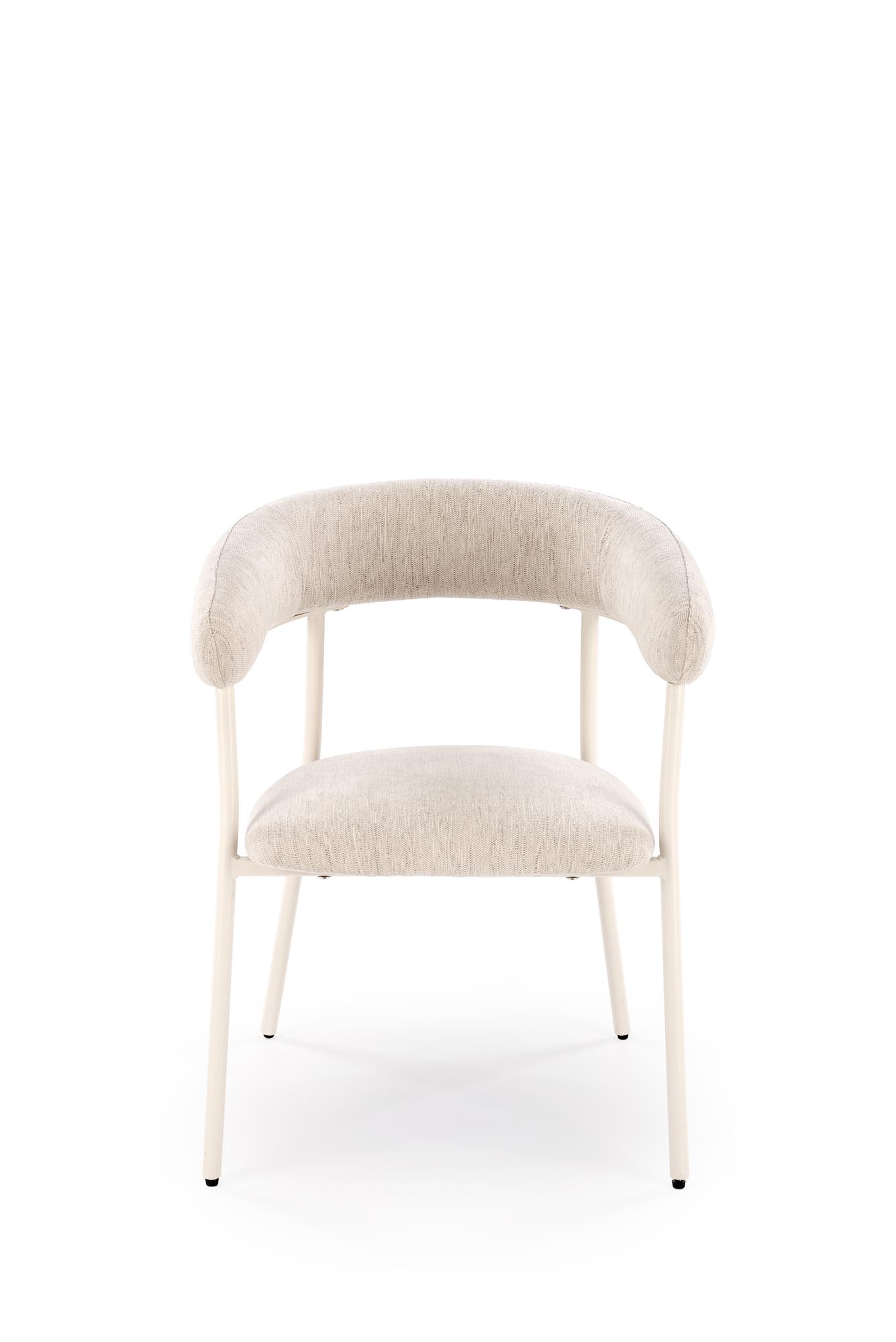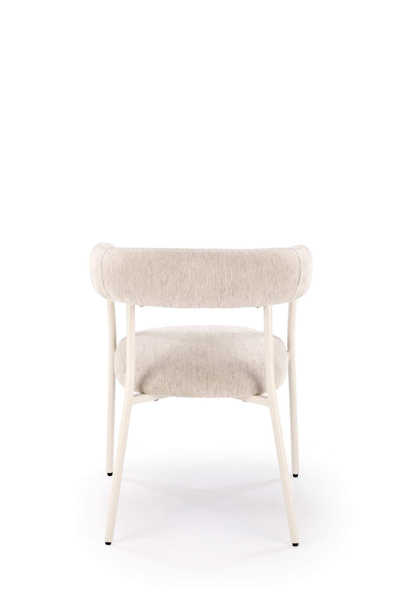 Jídelní židle K557 - je pohodlná jídelní židle v retro designu, vyrobena z bílé lakované oceli a čalouněného sedáku z příjemné látky ODIN v béžové barvě.