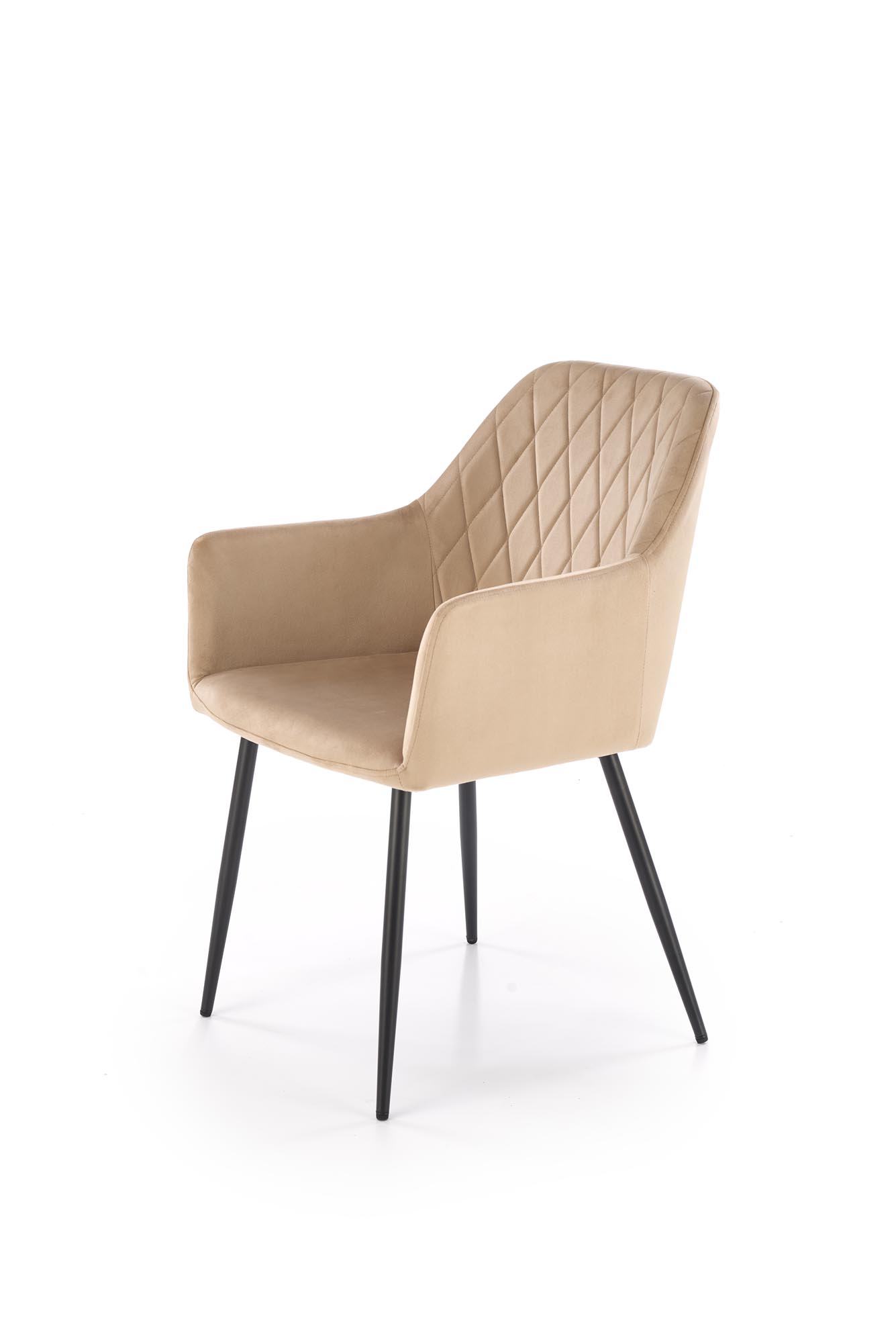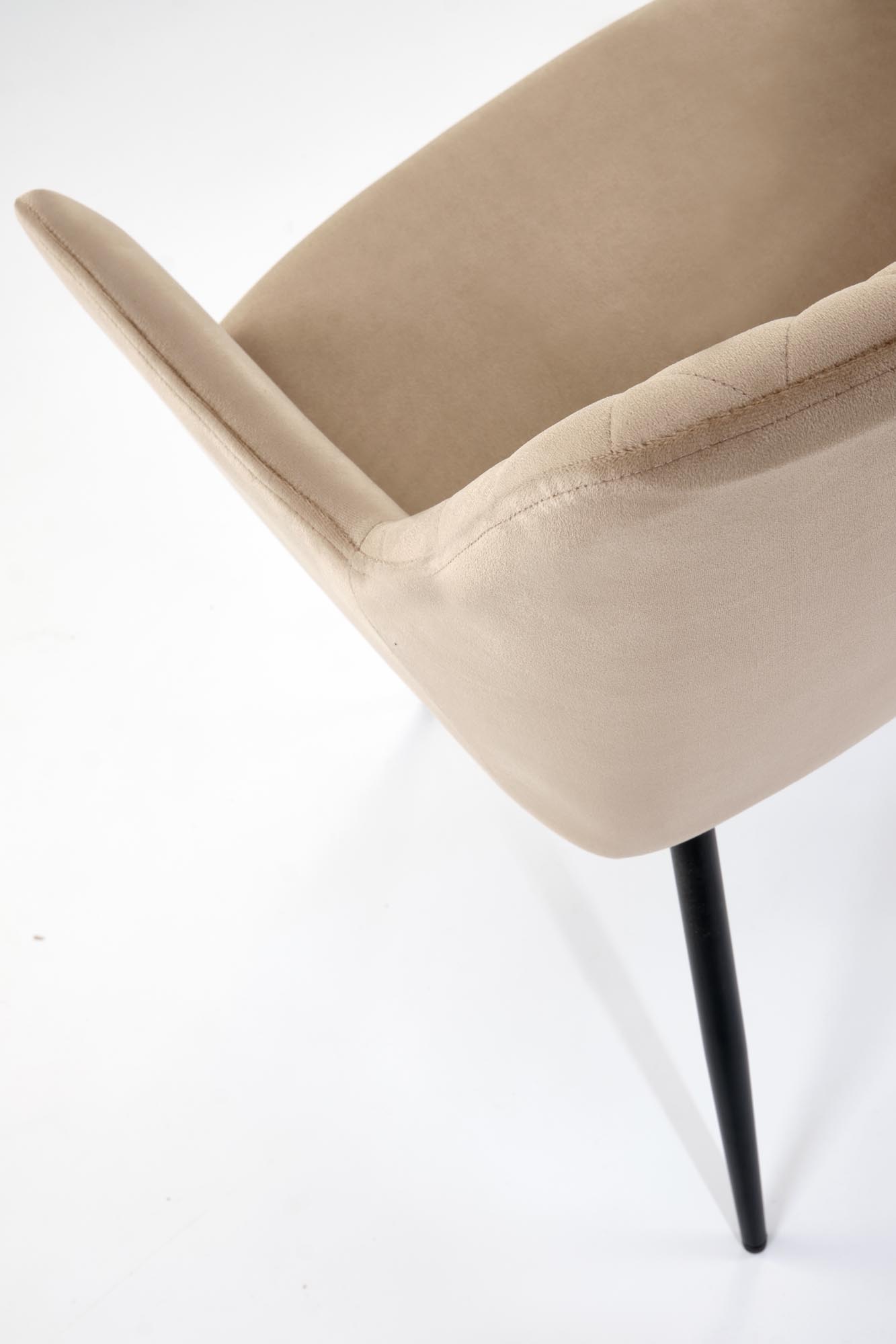 Jídelní židle K558 - je elegantní židle zdobená prošíváním, vyrobena v kombinaci lakované černé oceli a sedáku ze sametové béžové látky.
