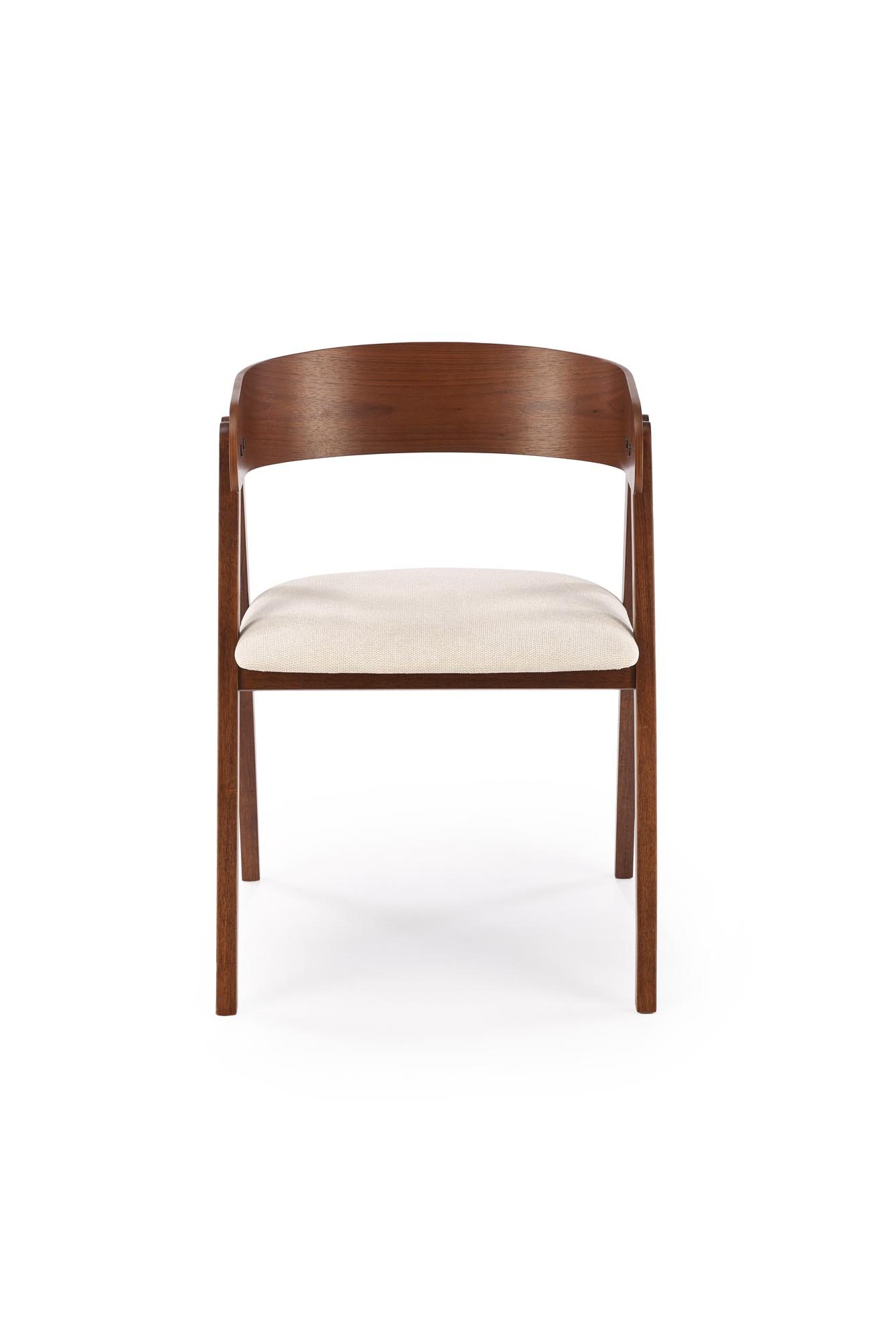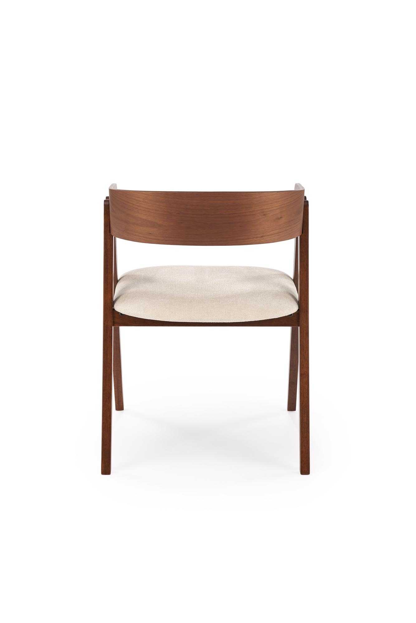 Jídelní židle K562 - je pohodlná židle ve stylovém provedení vyrobena z masivního kaučukového dřeva v kombinaci s vysoce kvalitní ohýbanou překližkou v odstínu ořech a s čalouněním v potahové látce v béžové barvě.