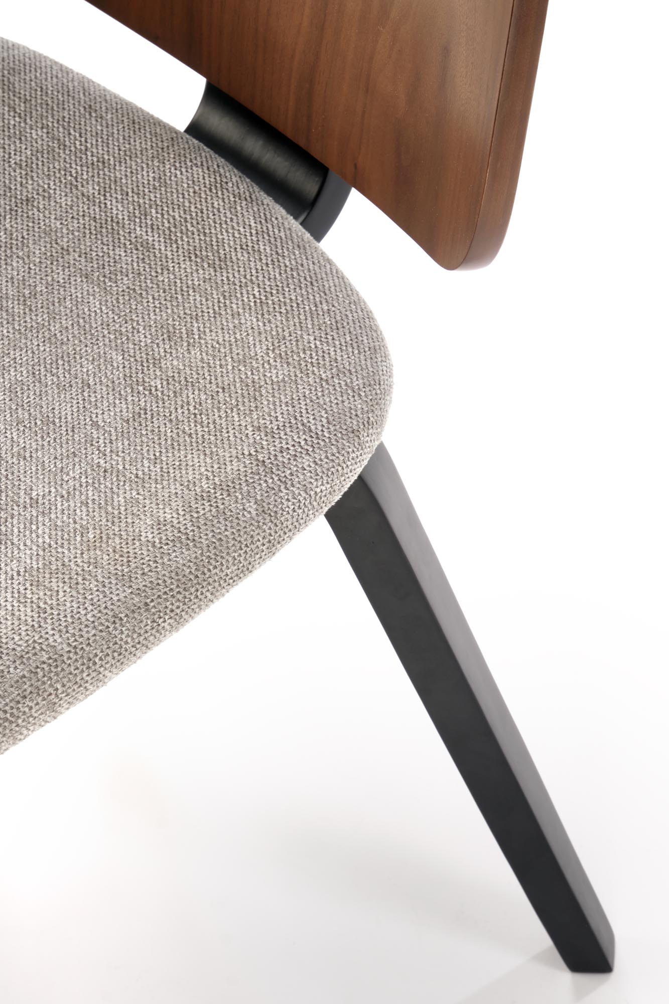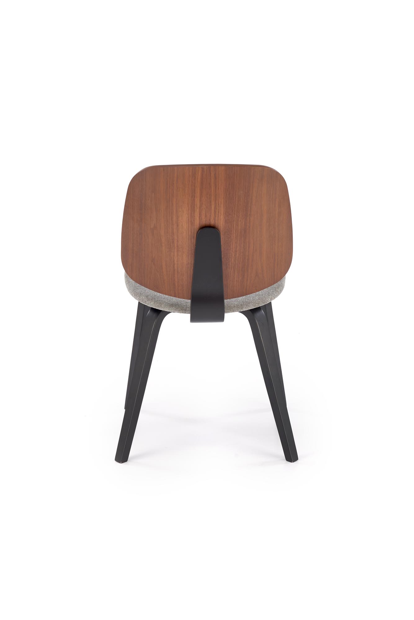 Jídelní židle K563 - je pohodlná židle ve stylovém provedení vyrobena z masivního kaučukového dřeva v kombinaci s vysoce kvalitní ohýbanou překližkou v odstínu černá/ořech a s čalouněním v potahové látce v šedé barvě.