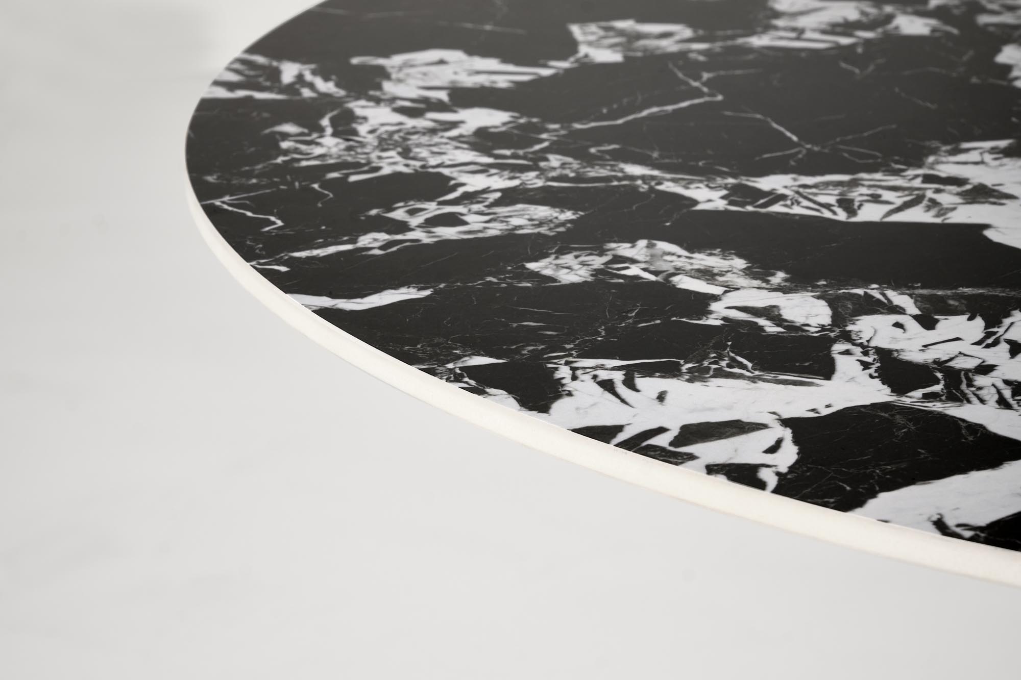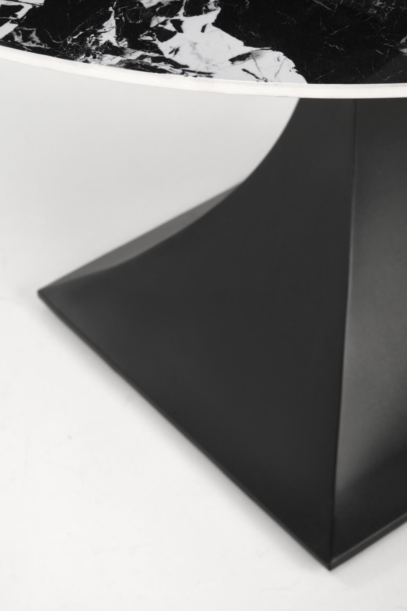 Jídelní stůl MANUEL - je kulatý jídelní stůl vyroben v kombinaci slinutého kamene černé mramorové barvy s černou kovovou nohou.