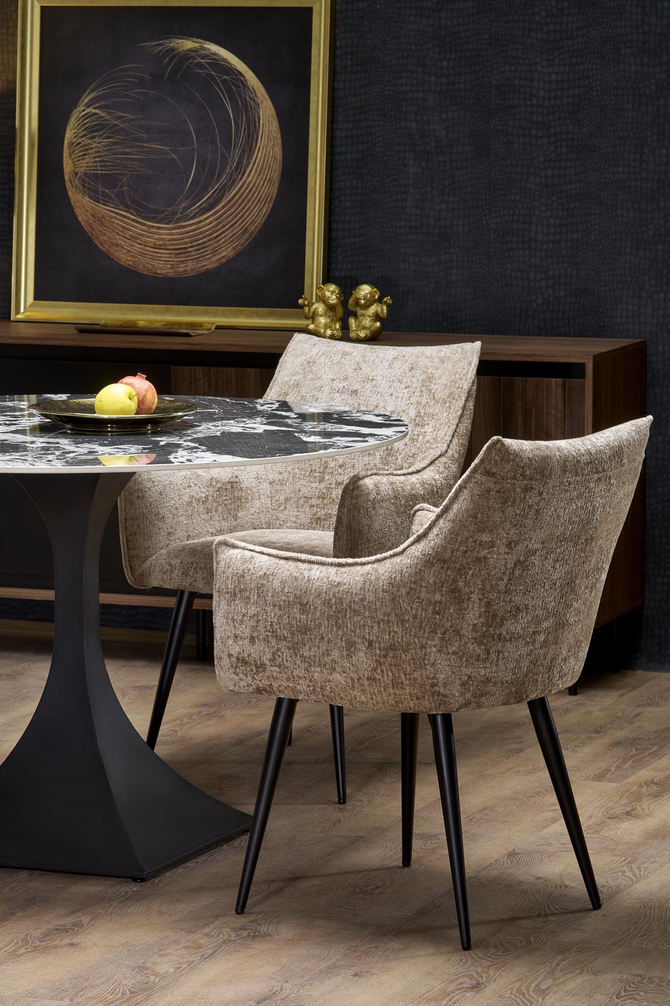 Jídelna je důležitým bodem domova, ve kterém se setkává celá rodina a přátelé, stojí za to věnovat se výběru vhodného stolu a investovat do něj. Kromě toho, že se jedná především o praktický kus nábytku, moderní jídelní stůl určuje celkový styl interiéru. Moderní a čistý design mu dává elegantní a sofistikovaný vzhled. U tohoto stolu můžou pohodlně stolovat až 4 osoby. Jídelní stůl je vyroben ze slinutého kamene s kovovou podnoží černé barvy. Užijte si krásu bydlení bez kompromisu ohledně funkce.