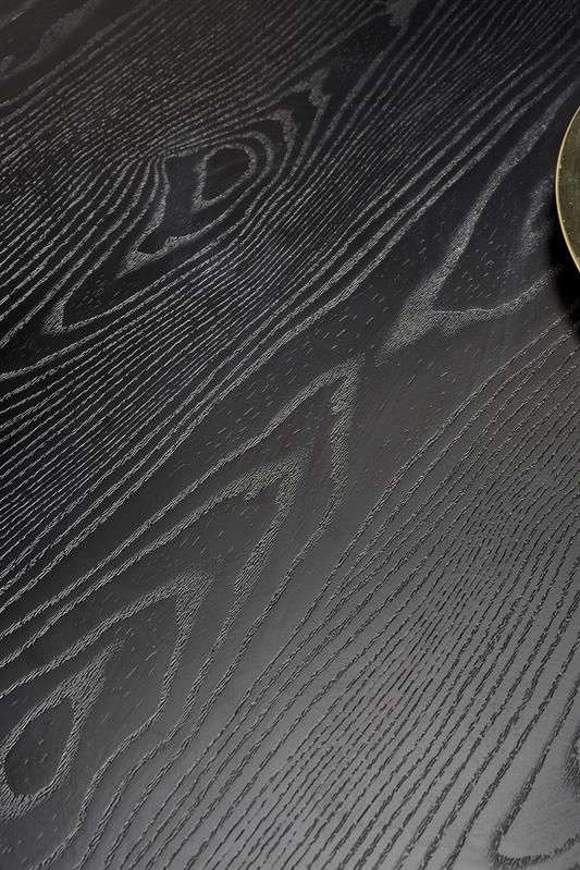 Jídelní stůl EMBOS - je moderní jídelní stůl vyrobený v černé lakované MDF desky a designové podnože z černo zlaté lakované chromované oceli. Stůl je vhodný do moderní jídelny.