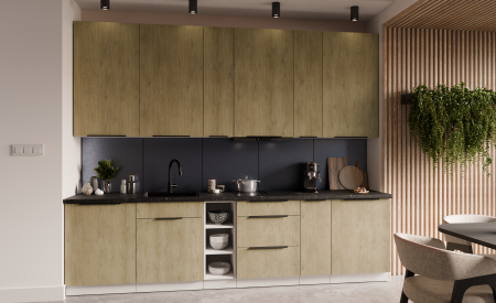 Kuchyňský systém CREMONA je moderní kuchyňský nábytek, který se hodí do každé kuchyně. Kuchyňskou linku si můžete sestavit z různých typů polic, skříněk, šuplíků a vysokých skříněk. Tato kuchyňská linka má na výběr dvojí provedení korpusu, buď v dekoru Bílá nebo Černá.