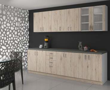 Kuchyňský systém Sara sonomma je moderní kuchyňský nábytek, který se hodí do každé kuchyně. Kuchyňskou linku si můžete sestavit z různých typů polic, skříněk, šuplíků a vysokých skříněk.
