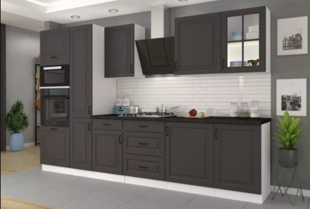 Kuchyňský systém STILLO GRAPHITE / BÍLÁ je moderní kuchyňský nábytek, který se hodí do každé kuchyně. Kuchyňskou linku si můžete sestavit z různých typů polic, skříněk, šuplíků a vysokých skříněk.